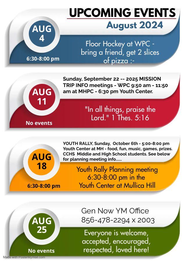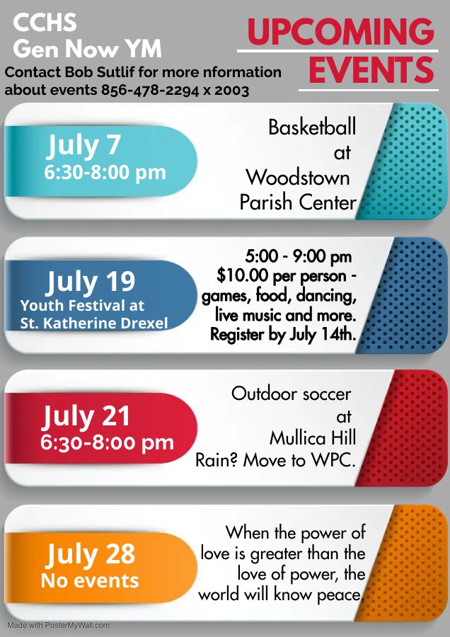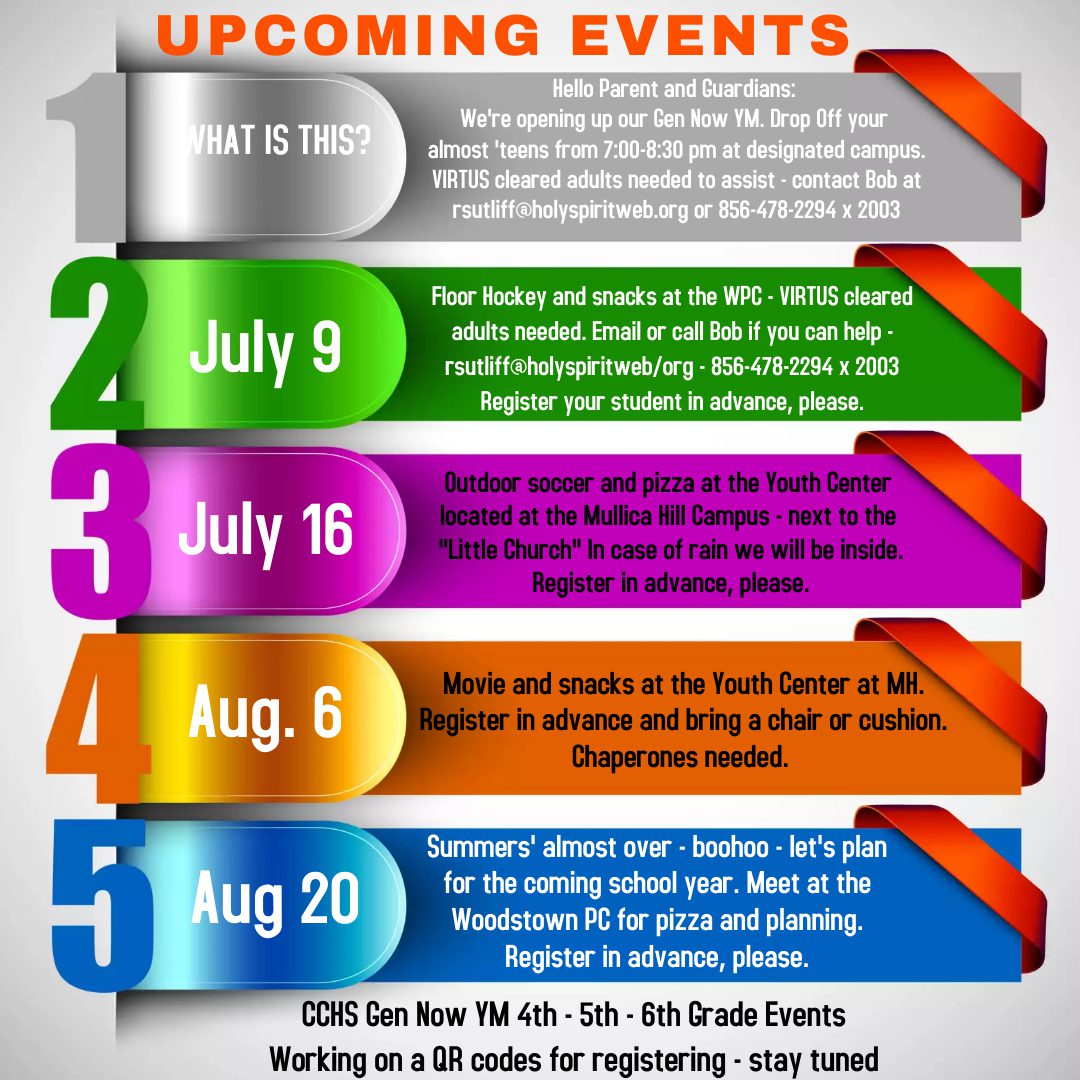 CCHS Gen Now Youth Ministry Event Calendars
